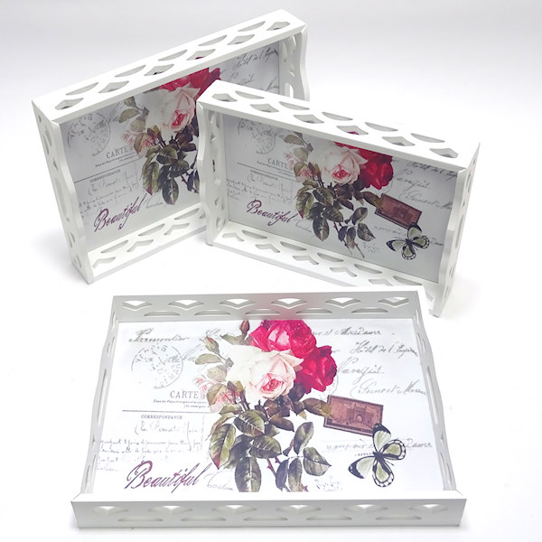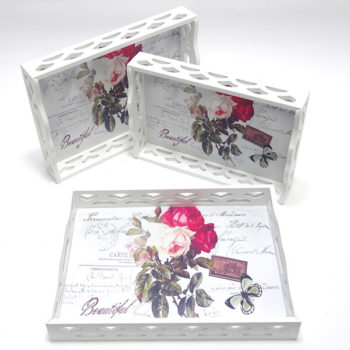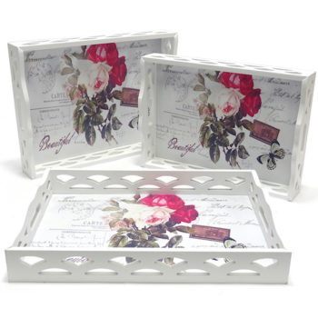 Сет од три ултра модерни послужавници од дрво во вид на кутија, стилизирани со прекрасен дезен.