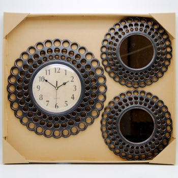 Ѕиден часовник со две огледала кои се поставуват на ѕидот како композиција.