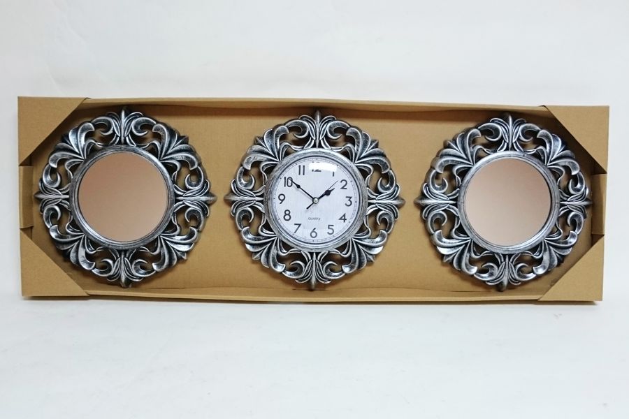 Ѕиден часовник со две огледала кои се поставуват на ѕидот како композиција.